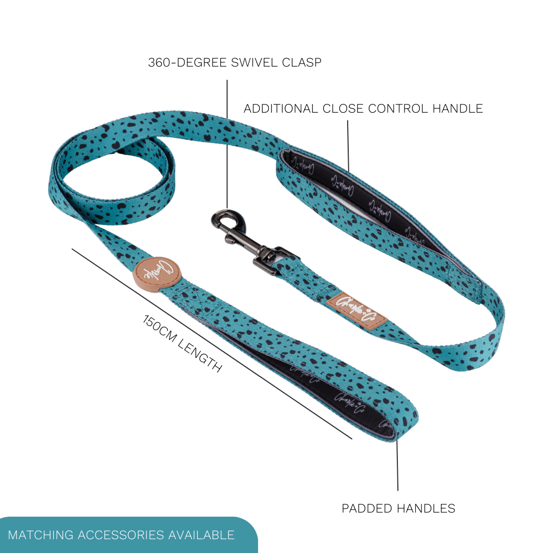 The “Keep It Teal” lead is crafted from high quality nylon and boasts a complimentary teal tone pallet contrasted by our signature Charlie + Co branding.