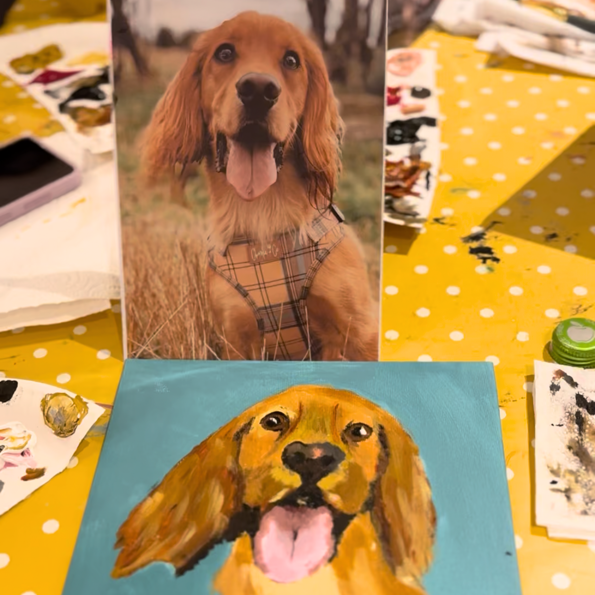 Don't worry, we're not expecting your precious pooches to sit still and pose all evening. The master sketcher, Sarah, will prepare a canvas with your dog's likeness from a photo you provide beforehand. This means when you arrive, you’ll jump straight into painting, no drawing skills required!