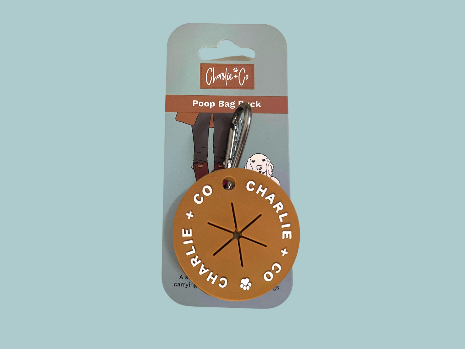 Introducing the Charlie + Co ‘Poop Puck’ – a sleek and practical solution designed to effortlessly carry your used waste bags. Crafted by pet lovers, for pet lovers, this compact carrier has a versatile clasp that can be attached to a leash, a belt, or even a handbag.
